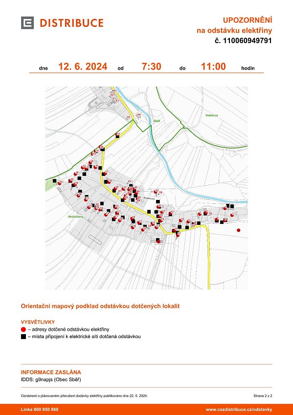 informujeme, ze 12.6.2024 od 7:30 do 11:00 v mistni časti Hrobicany proběhne odstávka elektrické energie.